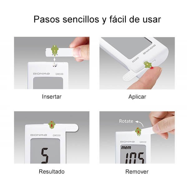Este equipo emplea tiras reactivas Rightest™ GS550 con biosensores recubiertos de oro, lo que asegura una lectura electroquímica estable, minimizando interferencias por hematocrito o temperatura. Está diseñado para uso profesional o institucional, con sistema de codificación automática que elimina errores de calibración y reduce la variabilidad entre mediciones.